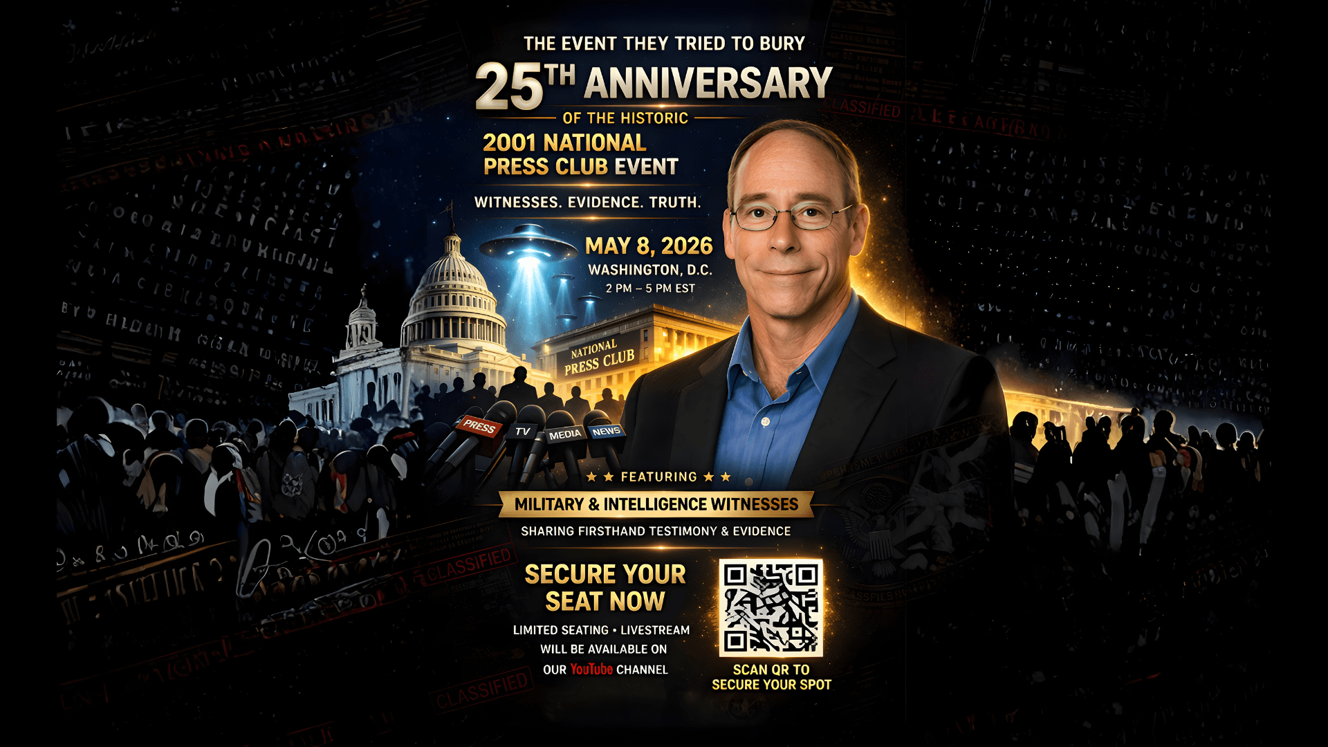 Dr. Steven Greer highlights the next phase of Disclosure ahead of the 25th Anniversary of the historic National Press Club event, emphasizing the need for full transparency on extraterrestrial and advanced human technologies.