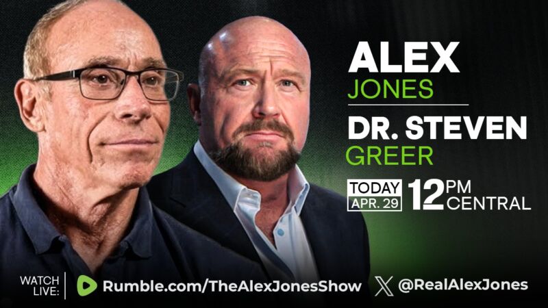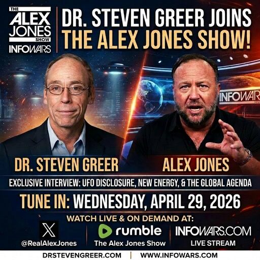 Watch Dr. Greer live today on Alex Jones at 1pm Eastern